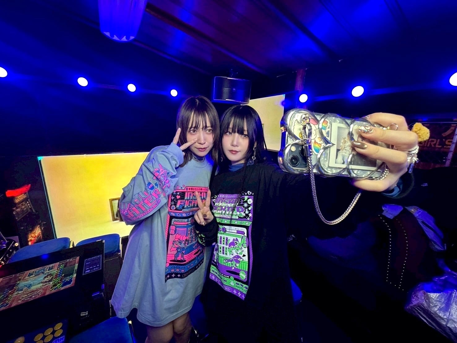 2025年冬の新作のテーマは『飲酒は己との戦いだ!』です!戦いというテーマなので今回は昔の格ゲー風に戦うでいすいちゃん&ほろよいちゃんのデザインにしてみました。 週末(終末)インシュファイターの皆さん、これからも己との酒バトルやっていきましょう☆ 今回も贅沢にフロントに3版、各袖に2版ずつ、合計7版のインクを使ったシルクスクリーン印刷です。お洗濯に強いです。 しかも今回はゲームテーマに合わせて蛍光インクをフロント、各袖それぞれに使っているのでブラックライトでビカビカに光ります。 ボディをはもともとビッグシルエットなお作りなのでダボっとかわいく着こなせます。 女性モデルどちらもXL着用