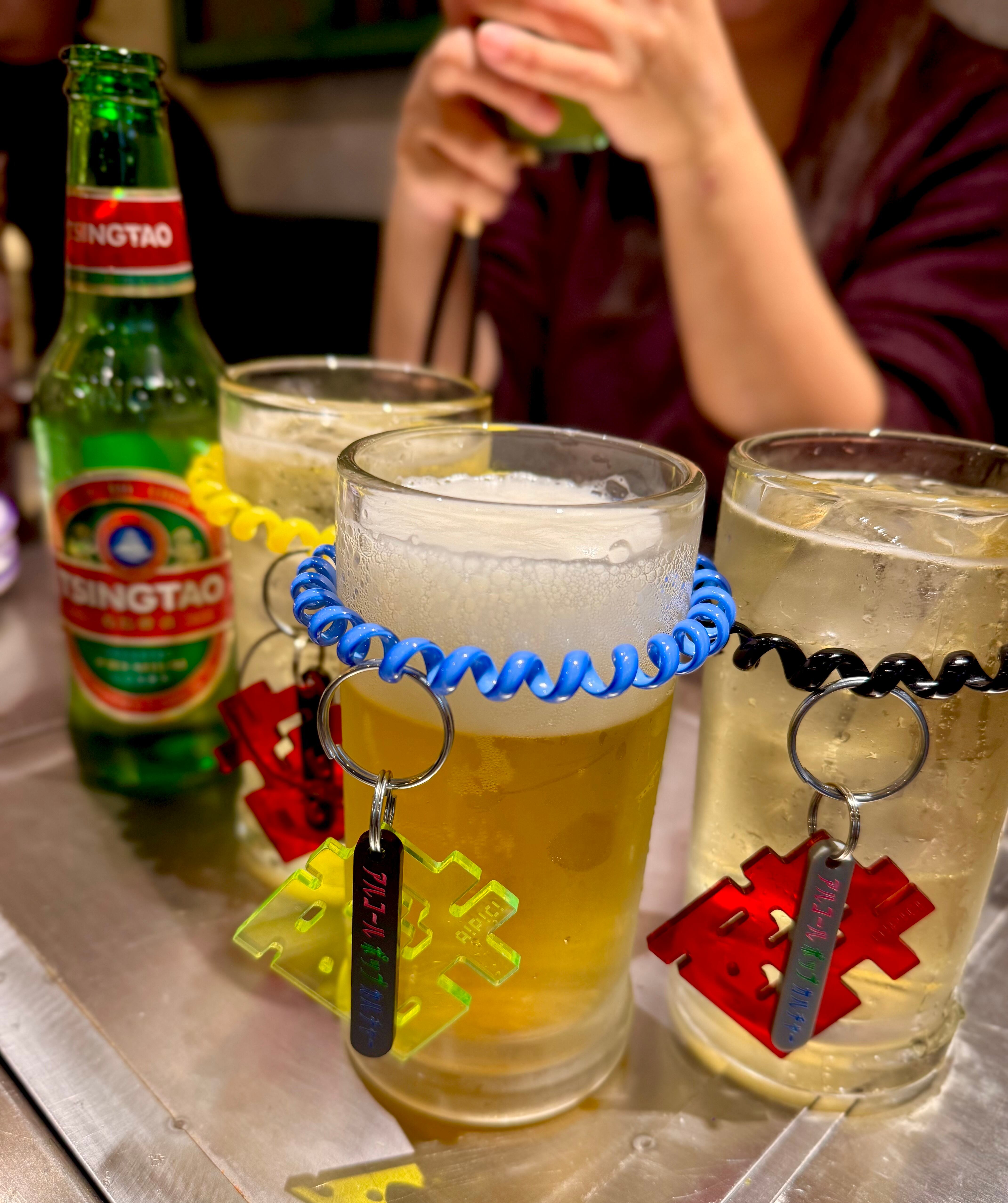 ライブハウスやクラブなどで自分のグラスがどれかわからなくならないようにさっと付けて目印にできたり自分のキープボトルにかけておくこともでき酒場で大活躍のアイテムです⭐︎