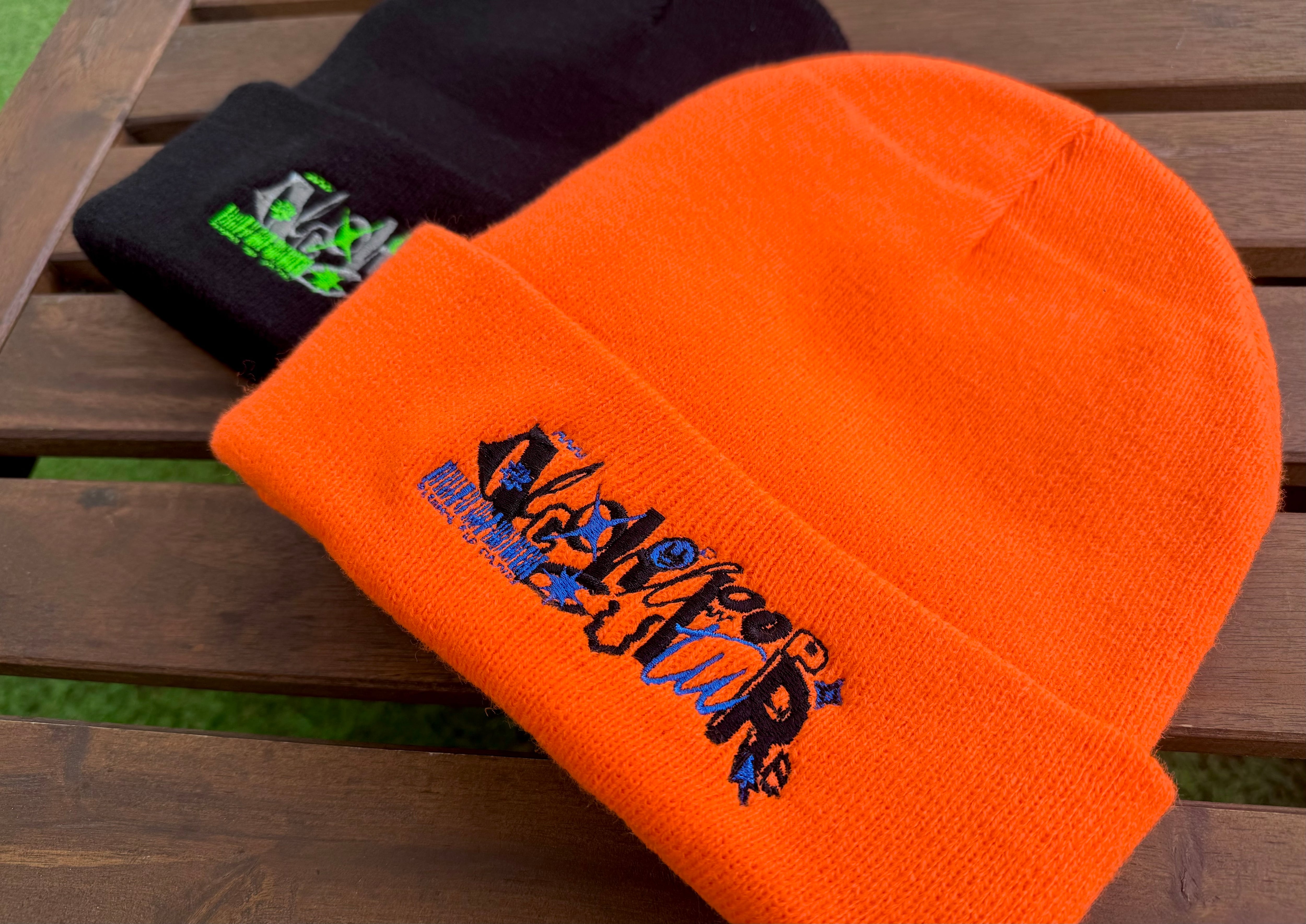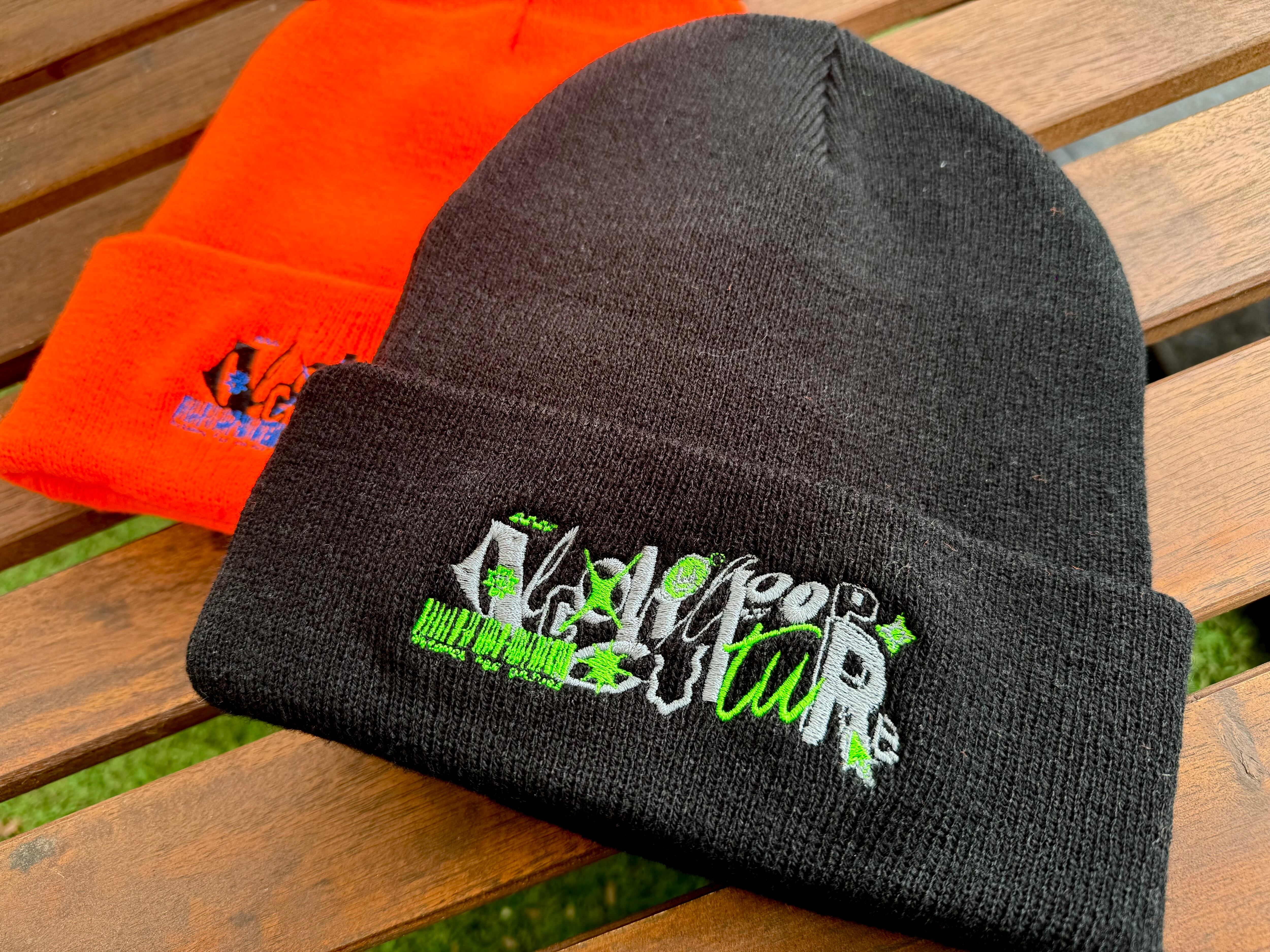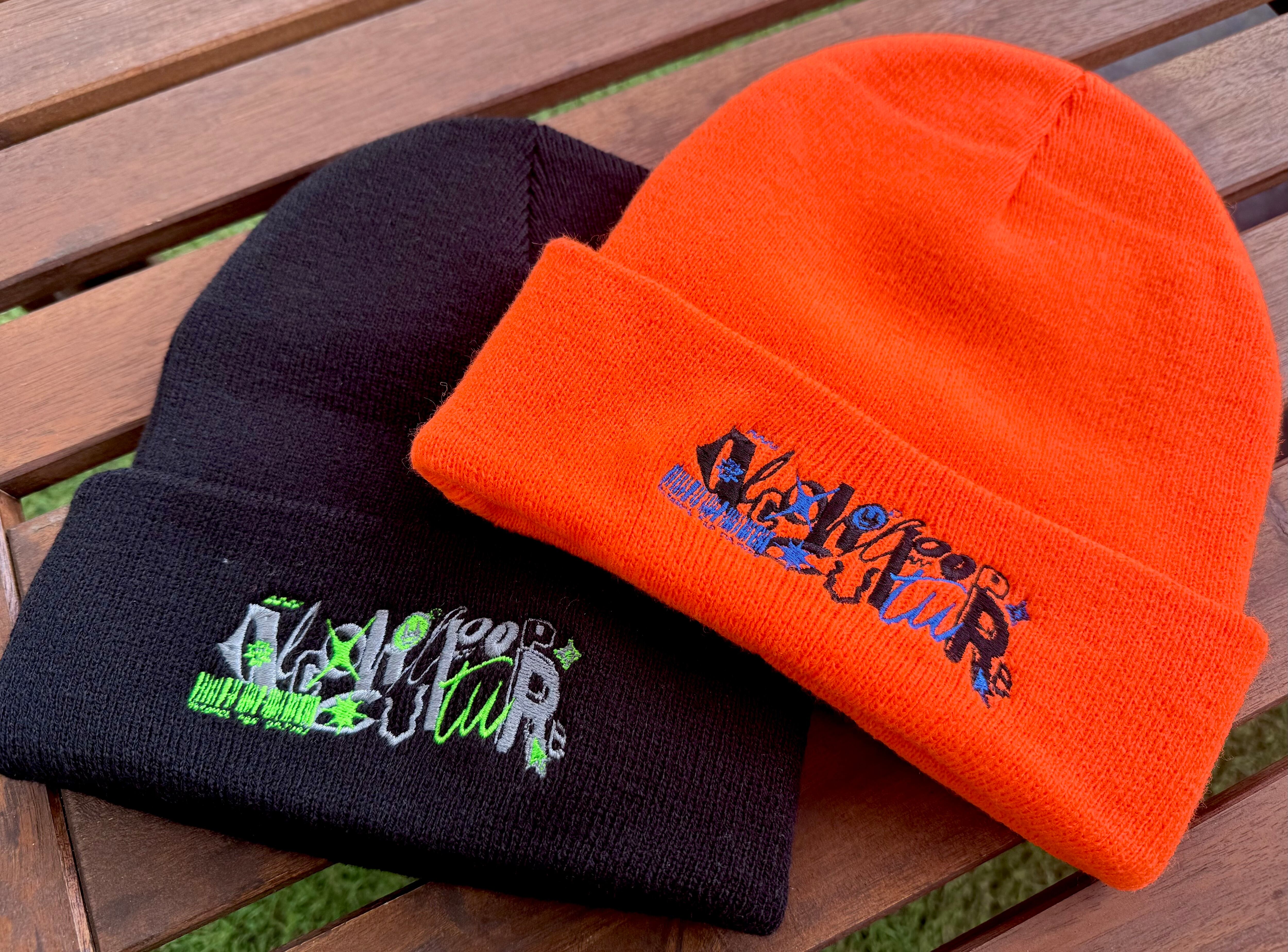 初のダンスイベント出店にあたりダンサーのニット帽率は高い!と聞いたのでnewアルポロゴの刺繍でニット帽作ってみました。