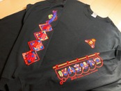 胸には全知全能の酒マークを刺繍、バックと腕の部分には洗濯にも強く発色のよいシルクスクリーン印刷でプリントをしています。