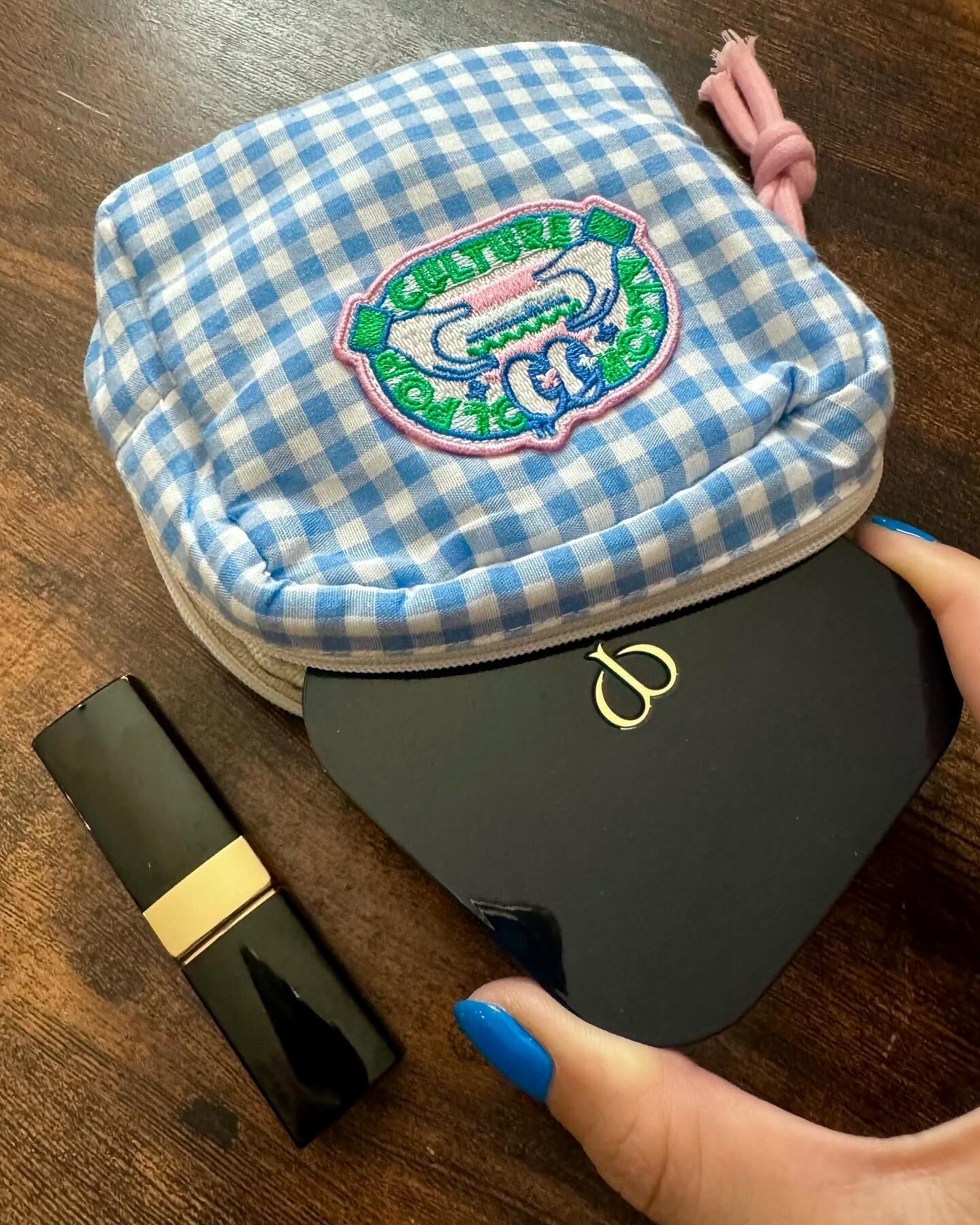 アルポオリジナルハンバーガーワッペン付きギンガムチェックのポーチです!